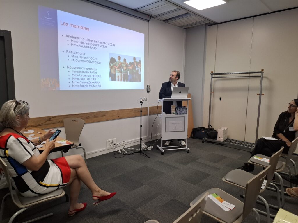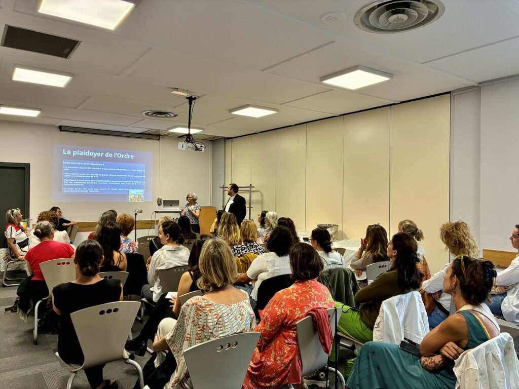 La première partie de la soirée fut animée par Mme Marie-Cécile MOULINIER, , représentante du secteur V au CNOSF et M. Gurwan DELAFORGE, président du CDOSF13 pour les actualités ordinales : ils sont revenus sur le contexte politique, les violences intrafamiliales et notamment le protocole d’accord CDOSF13 avec les parquets bucco-rhodaniens sur les violences conjugales, le dépistage néonatal, les arrêts de travail sécurisés, la déclaration anticipée de la cessation d’activité libérale, le nouveau guide des DASRI et les échographies de « plaisir ».